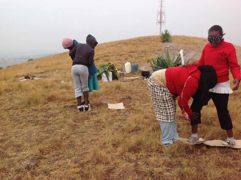 After observing the students, and in a spirit of prayer, we assigned each girl to an accountability partner. So, over the next few months they will meet with their partner for prayer and sharing. They will encourage and challenge each other in their walks with Jesus, and all other aspects of life here at the house. This is a sweet relationship, that really depends on vulnerability and trust. Many of the ABIDE alumni have remained extremely close with their accountability partners, and we hope for the same for these girls. So, in order to help them begin trusting their partners right away, they completed their final challenge activity: The Blind Guide. One partner was blindfolded, and the other had to verbally guide her (without touching her) down the mountain and up another “hill.” Then, once they reached the top of that second hill, they switched roles, and came back up the mountain with the campsite. Wow! Talk about trust! Though it was challenging, to say the least, they all really had a good time doing it, and learned a lot from it.