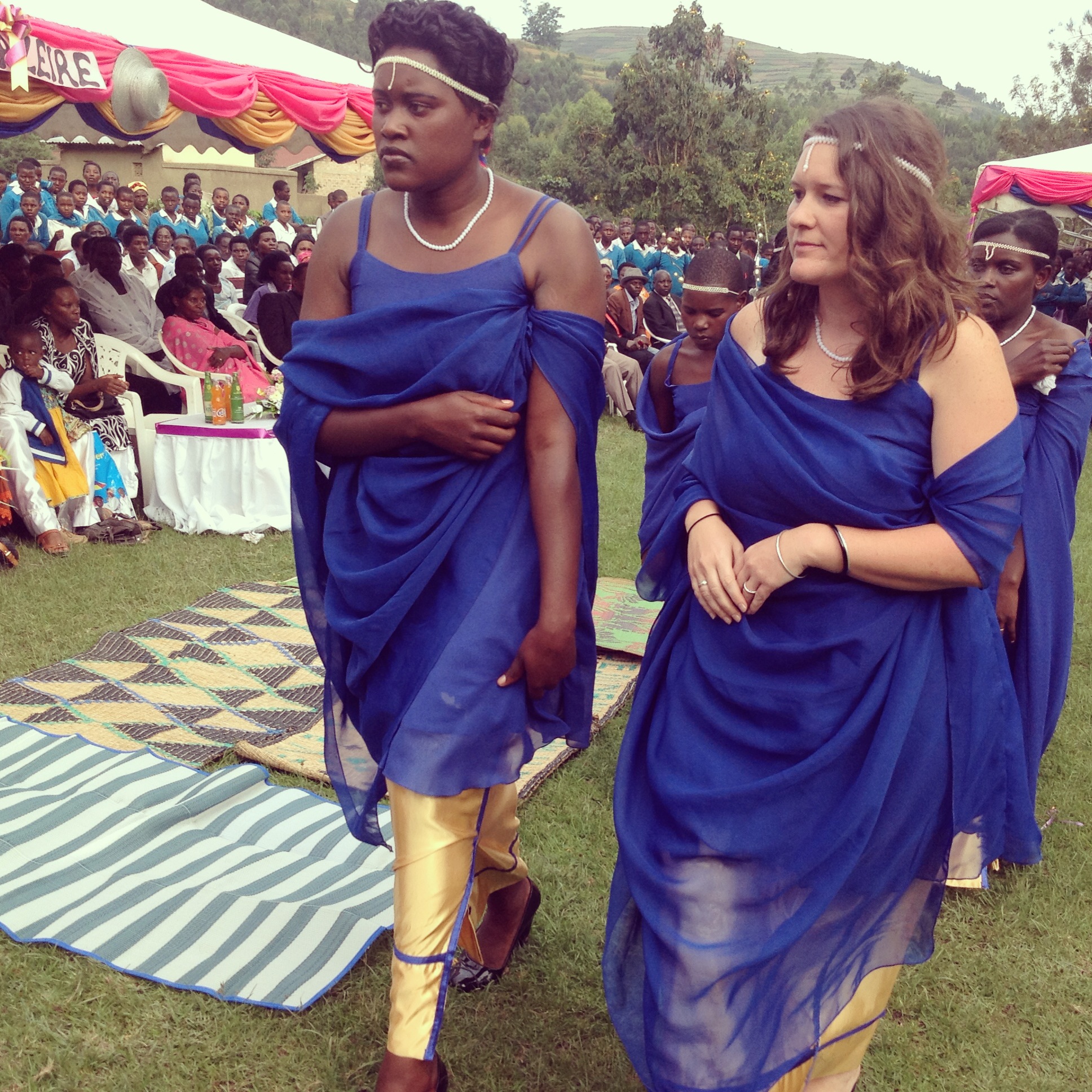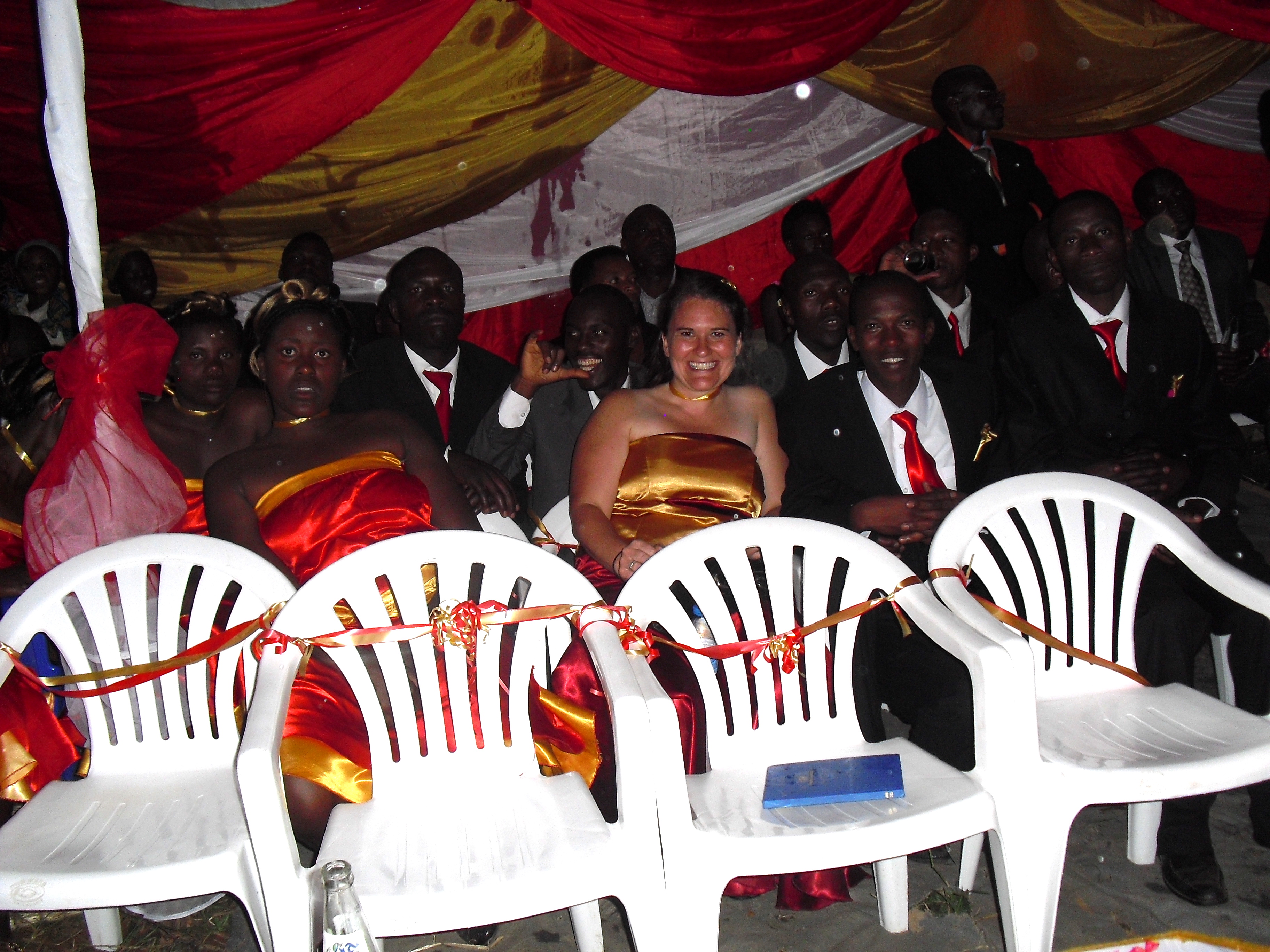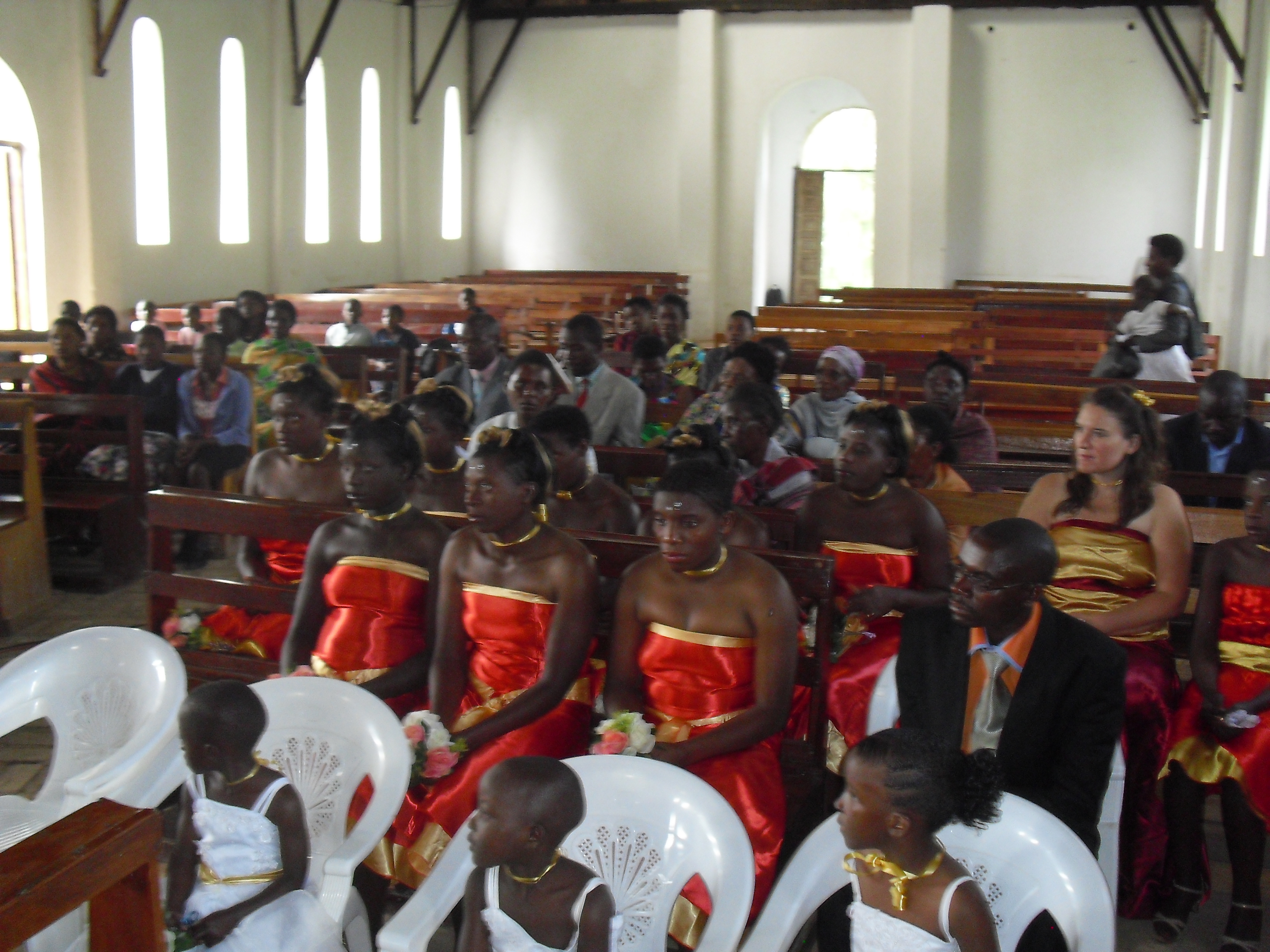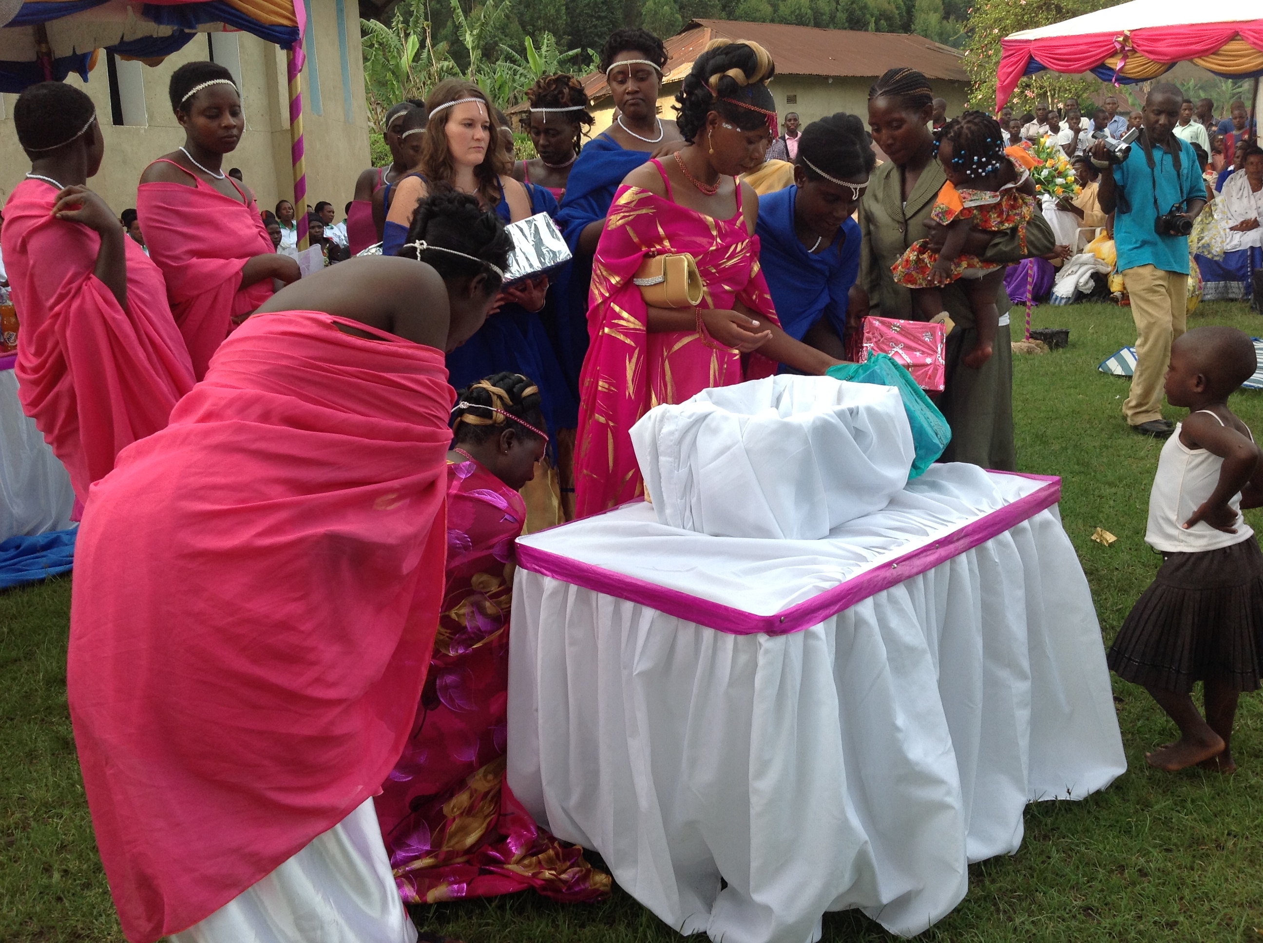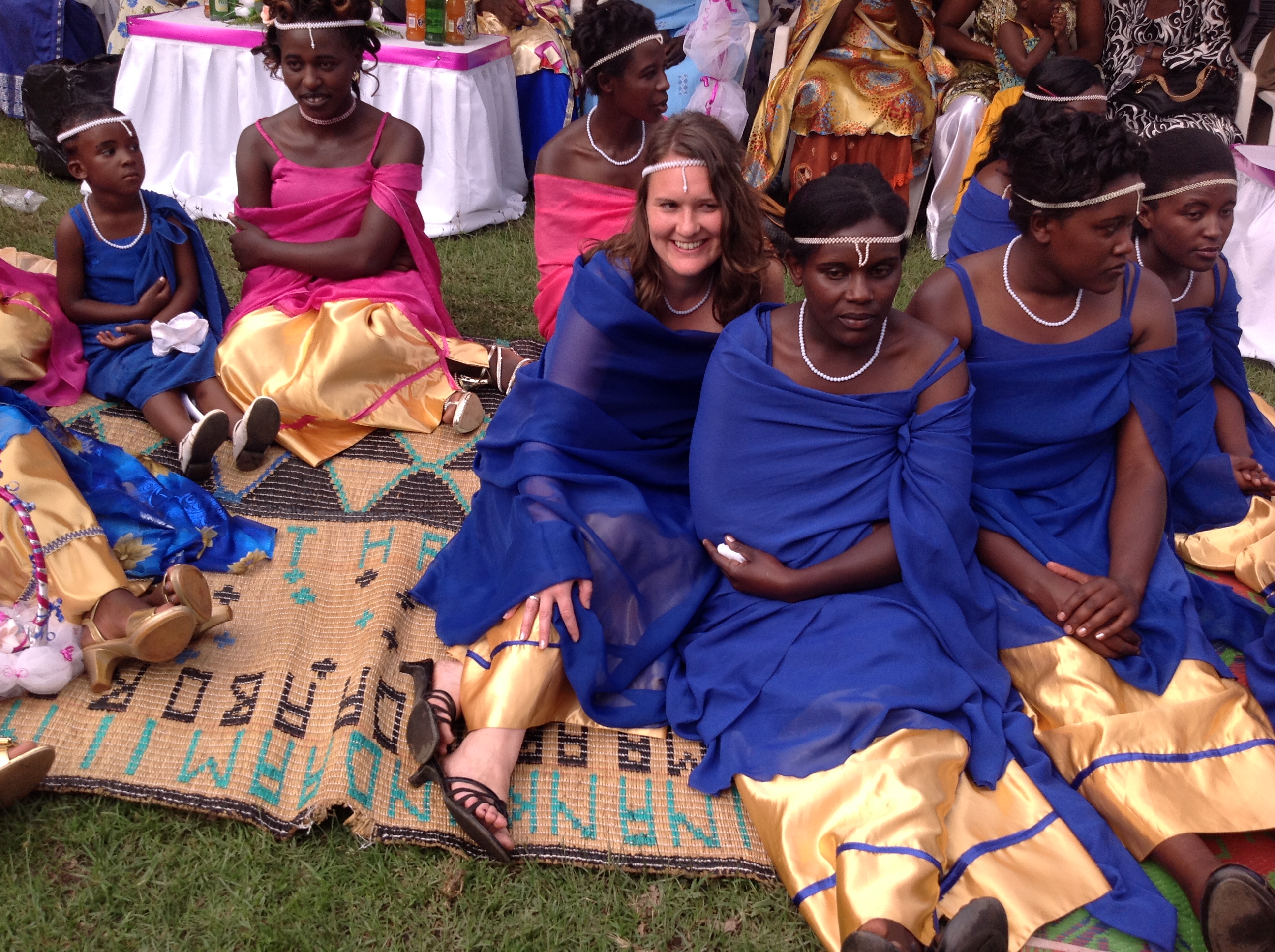 In America we have a rehearsal the night before the wedding. Here we don’t. This leads to some confusion, careful imitating, and occasional mistakes for the random Muzungu (white) bridesmaid who has never even attended a wedding in Uganda before this.