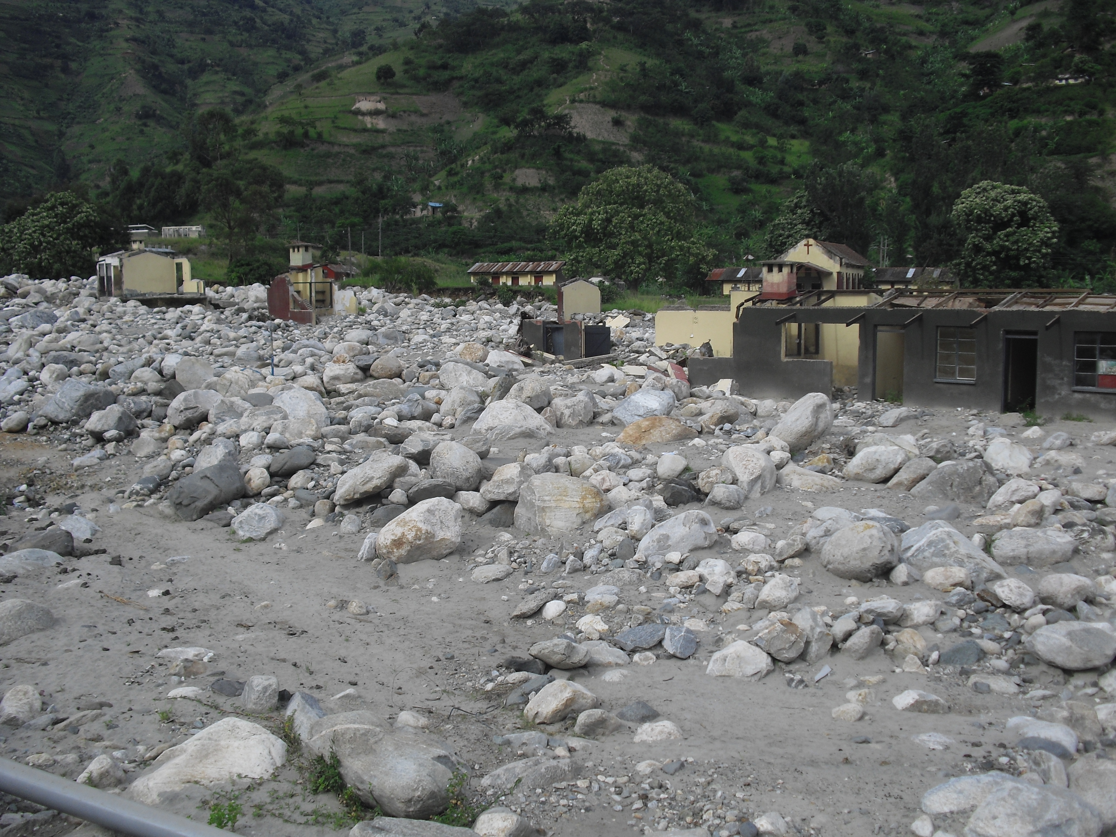 Last May this little river caused some major havoc. I’m not sure what happened up the mountain (snow melted, land slide, or something), but the water brought down HUGE and an unbelievable amount of boulders and left them in the river banks for several miles. In fact, from Monica’s place we could see tons of rocks and hear the river, but we couldn’t even see it. Well, we followed the reverend away from the road a little ways, and came to a surprising sight. He continued to tell us this story: In May there had been a conference in this church. They had taken a break for the hundreds of people to go get lunch. About 15 minutes later, the massive rocks came rolling through, completely destroying the church, houses, and many other buildings.