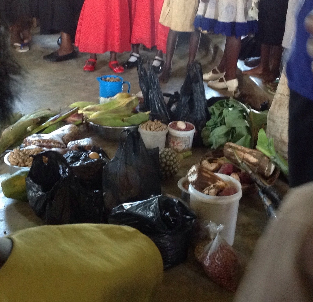 Sunday morning we found our way to a small village church and had the privilege of leading the service. With a language unfamiliar to the rest of the students, Scovia was busy translating most of the time. We left the house at 8:30 to set up for the 9:00 service. By the time we headed back to the house for lunch, it was after 1:30! Like a typical village offering, most people did not bring money, but items from their gardens instead: corn, avocados, peanuts, banana tree shoots, bananas, eggs, beans, etc. This Sunday happened to be a special fundraising day for construction. So, what typically happens with these offerings, is they are auctioned off to the congregation, and the money is put in its place. But this time, they attempted to double their money for the fundraiser. So, as people bid against each other for various items, other members of the congregation were contributing to the basket in order to match the bid. For instance, I had my coworker (who knows the language) bid on a big ol’ sack of peanuts for me. It ended up going to us for 8,000 Ugandan Shillings (about $3.25). But before it was handed over, other people put in coins until they also reached 8,000, making that offering actually worth 16,000 with the help of many people. So now I have the job of shelling and roasting…but they will last me a long time!
