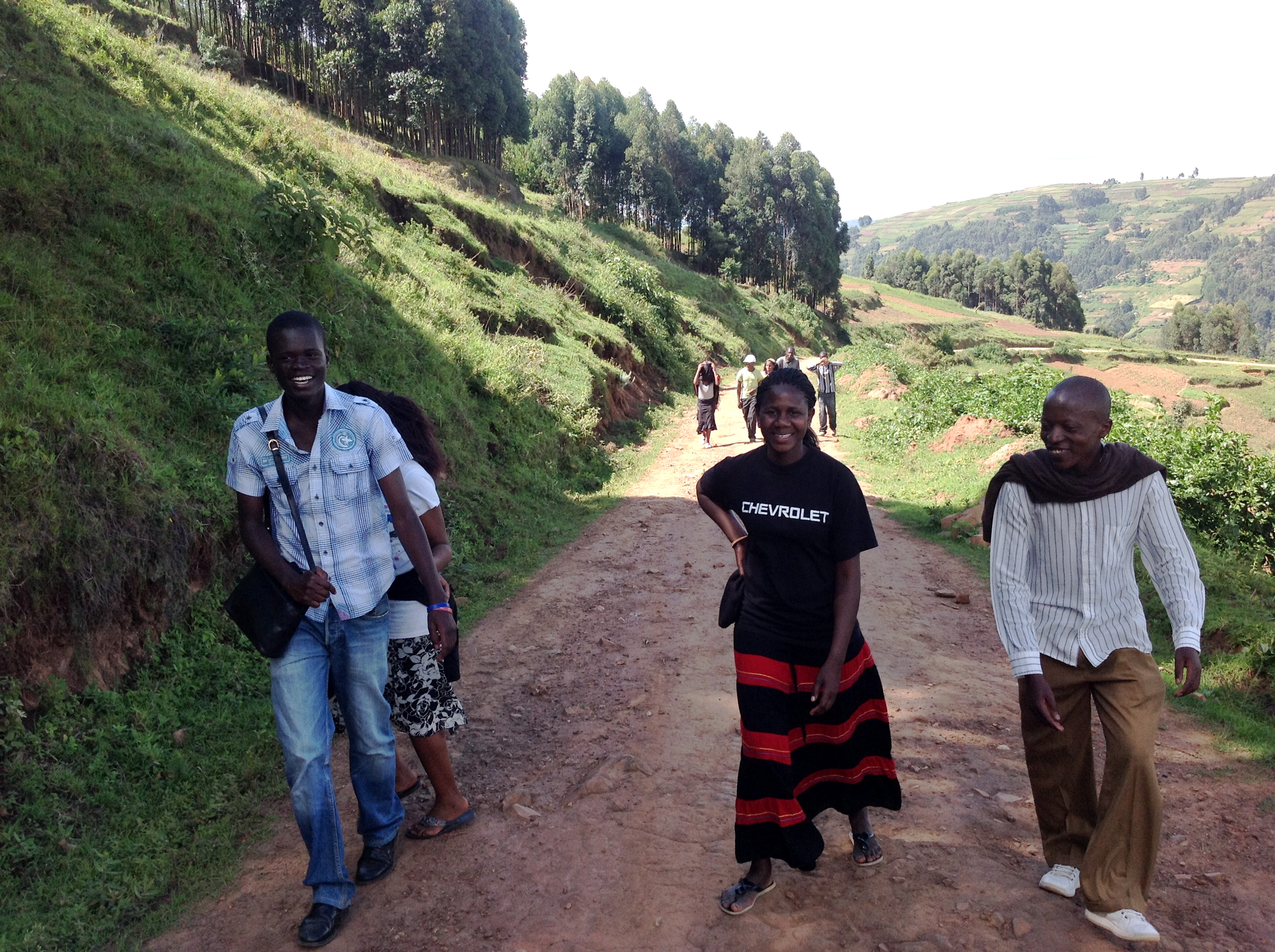Since we were still missing our major form of transportation, we ended up taking a boat across Lake Bunyoni, then hiked up so-called hills (anyone not from this area would call them mountains) to reach our destination in the village of Kishanje. Most students had never been on a boat before, and they were quite nervous before we took the 30-minute voyage…upon reaching the dock, all but one agreed that they would do it again if given the opportunity.