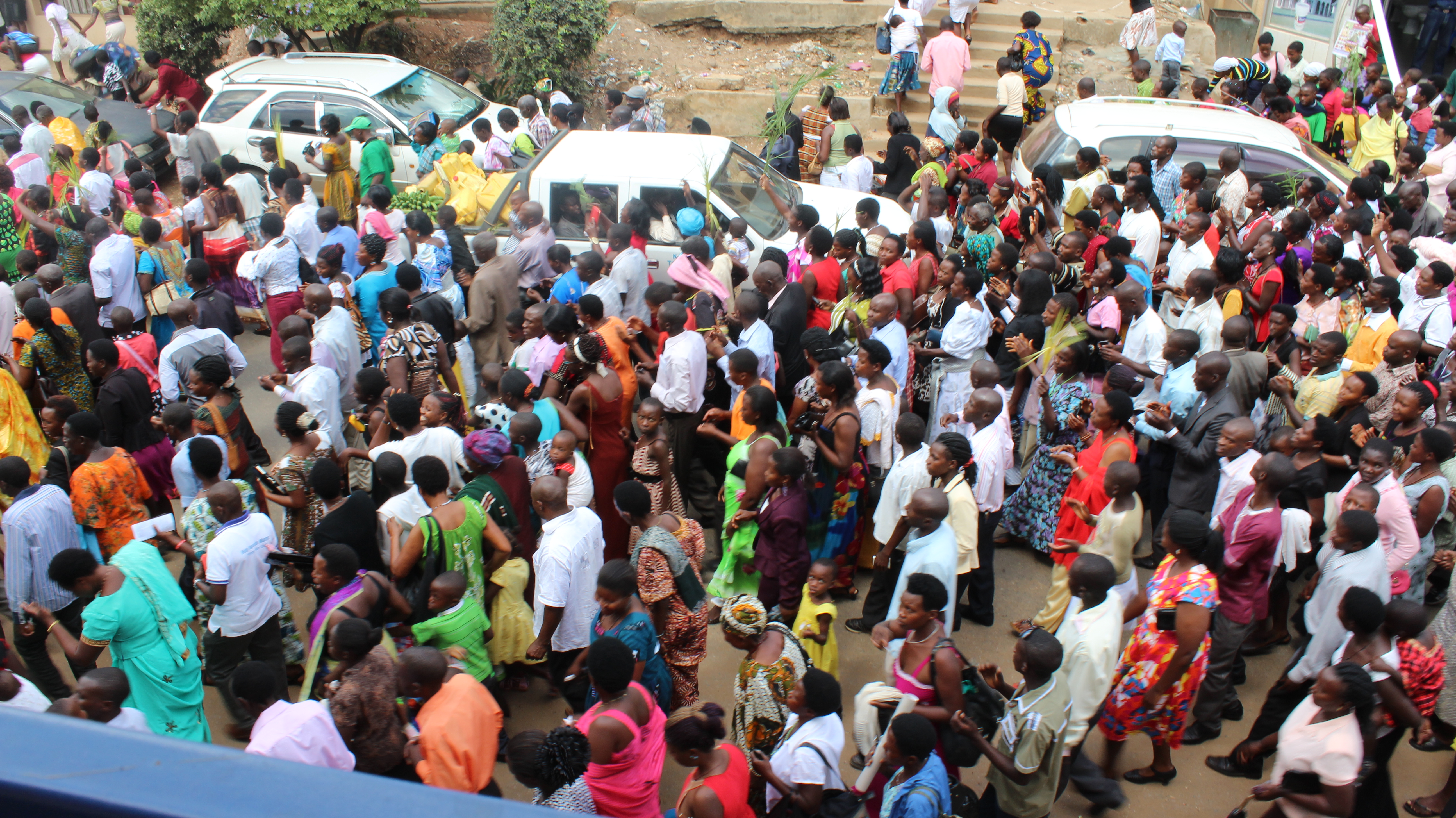 Afterwards, I went to town, and ended up sitting on a balcony when all of a sudden a parade was passing through the street below.  Since I happened to have my camera with me, I whipped it out really quickly (just like several Ugandans whipped out their smart phones), and started snapping pictures and recording a little video.