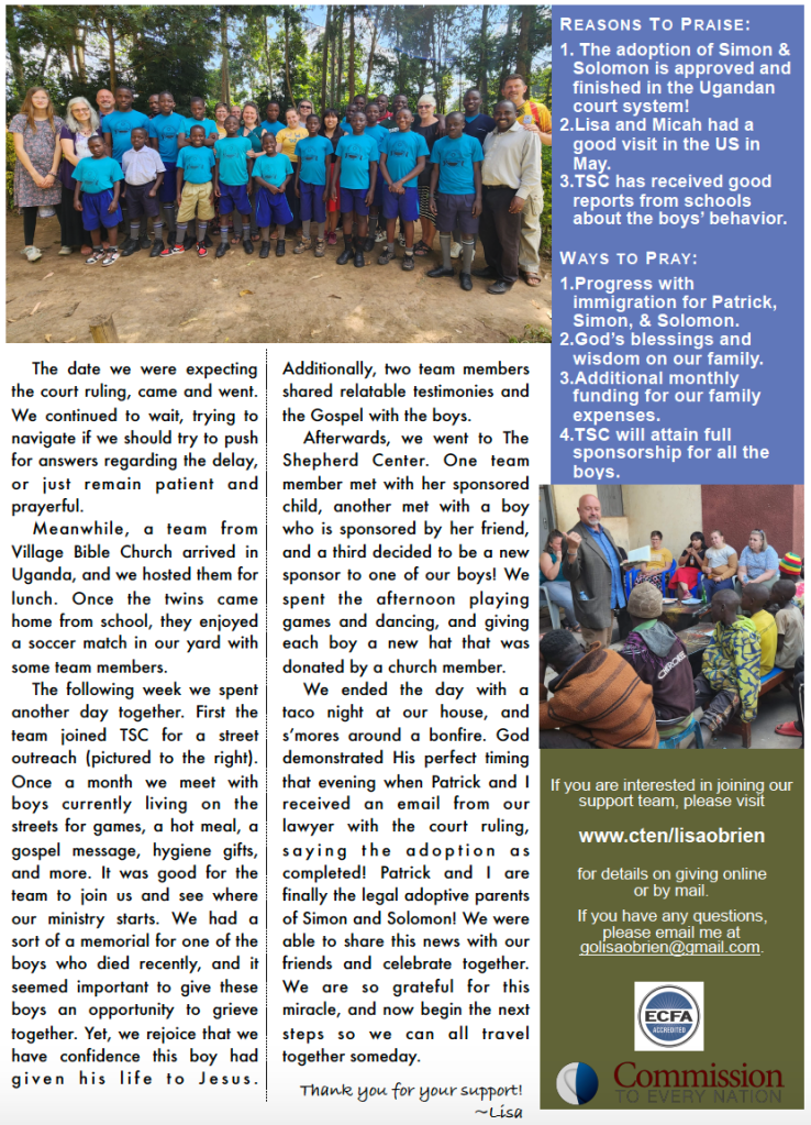 Praise God…our adoption is finished in the Ugandan courts! (Though it is not the end of this road…)